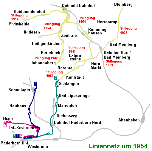 Das Liniennetz um 1954